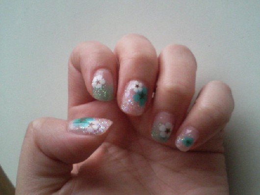 ので、写真ないですが、逆の右手は、お花の数を減らして調整しました