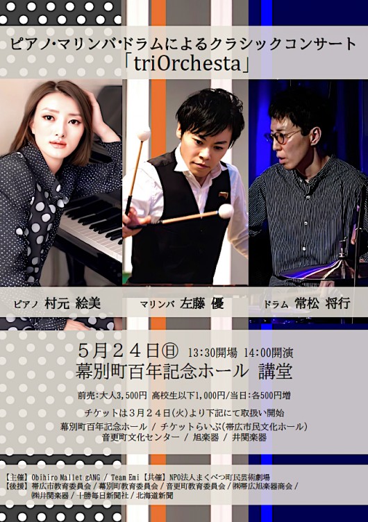 5/24!幕別! ピアノ・マリンバ・ドラムによるクラシックコンサート 「 triOrchesta 」
