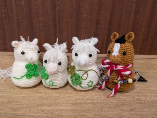 左から 色々試行錯誤しながら、作って 茶色の子が 一番馬っぽくなりました。