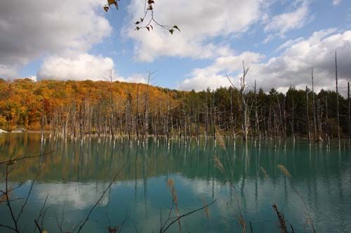 マンガンが溶けて流れて トルコ石のような色の滝そして川。